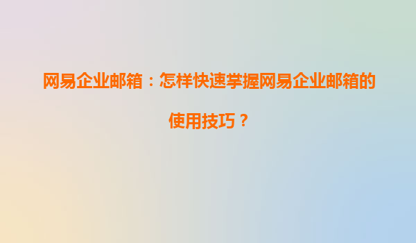 2025-04-20怎样快速掌握网易企业邮箱的使用技巧? 网易企业邮箱作为一款功能强大的企业通讯工具,已经成为了许多企业沟通与管理的核心平台。无论是中小型公司还是大型企业,网易企业邮箱凭借其稳定性、易用性和丰富的功能...