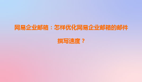 如何优化网易企业邮箱的邮件撰写速度 在现代企业运营中,电子邮件是最重要的沟通工具之一。网易企业邮箱,作为国内领先的企业邮箱服务平台,因其高效、稳定、安全的特点被众多企业广泛使用。企业在日常运营中,...