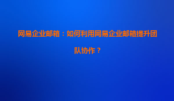 2025-04-20如何利用网易企业邮箱提升团队协作 一、网易企业邮箱概述 随着企业信息化的快速发展,电子邮件作为重要的沟通工具,已经成为团队日常工作中不可或缺的一部分。网易企业邮箱作为一款专业的企业级邮箱服务,...