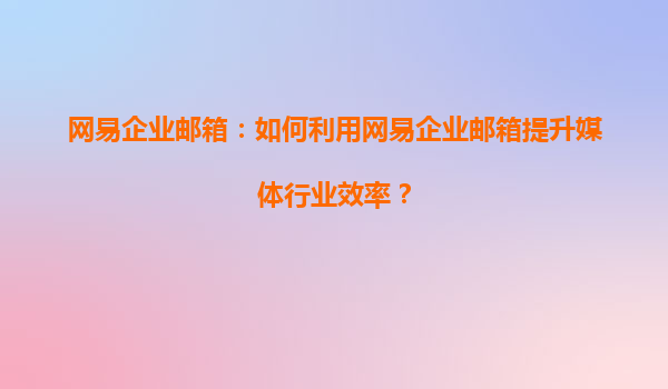 2025-04-20如何利用网易企业邮箱提升媒体行业效率 随着信息技术的飞速发展,各行各业都在不断追求数字化、智能化的转型,媒体行业也不例外。在这个信息量爆炸的时代,媒体行业的运营效率、沟通协调能力至关重要。而作为一种...