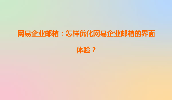 2025-04-19如何优化网易企业邮箱的界面体验 网易企业邮箱是目前国内广泛使用的一款企业级电子邮件服务,其强大的功能和高效的邮件管理系统,已经成为许多企业和团队日常办公的必备工具。为了更好地满足用户需求,优化网易...