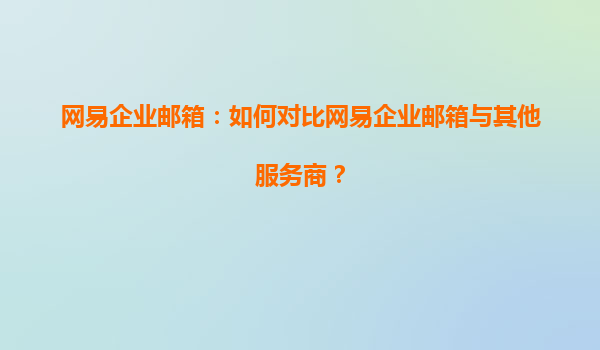 2025-04-19如何对比网易企业邮箱与其他服务商 在如今的企业办公环境中,电子邮件已成为工作沟通和信息传递的重要工具。作为企业办公的基础设施之一,企业邮箱的选择直接影响到企业内部的沟通效率和信息安全性。本文将通过对比...