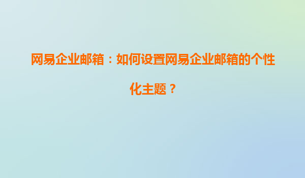 2025-04-19网易企业邮箱:如何设置网易企业邮箱的个性化主题? 在当今快节奏的工作环境中,企业邮件已成为沟通和协作的重要工具。为了提升邮件的视觉吸引力以及展示企业形象,许多企业开始使用个性化的邮箱主题。网易企业邮...