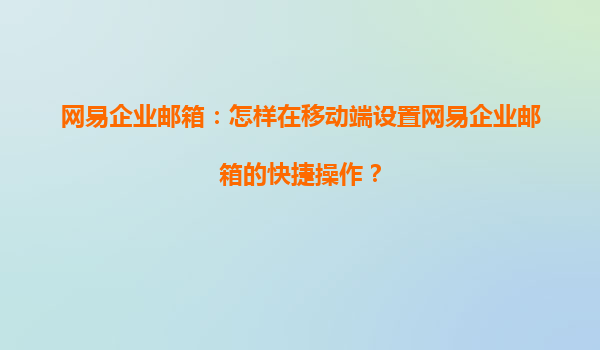 2025-04-19网易企业邮箱:怎样在移动端设置网易企业邮箱的快捷操作 随着企业业务的发展,越来越多的企业开始使用网易企业邮箱来进行日常的邮件通信。而随着移动互联网的发展,企业员工常常需要在移动端进行工作,以提高办...
