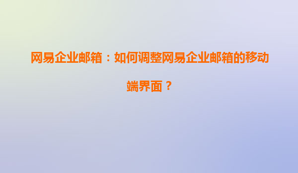 2025-04-19如何调整网易企业邮箱的移动端界面? 网易企业邮箱作为国内领先的企业级邮箱服务之一,提供了丰富的功能与灵活的操作界面,特别是在移动端的使用体验上,给予了用户极大的便利。然而,随着越来越多的企业开始依...