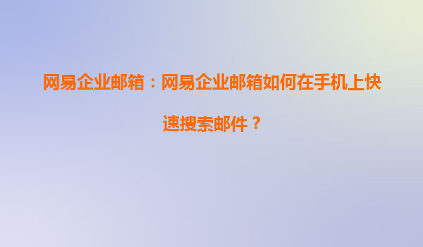 2025-04-19网易企业邮箱如何在手机上快速搜索邮件 在如今的快节奏工作环境中,电子邮件已成为重要的沟通工具,尤其是对于企业用户来说。网易企业邮箱凭借其稳定、安全和强大的功能,成为众多公司和个人用户的首选邮箱服务之一...