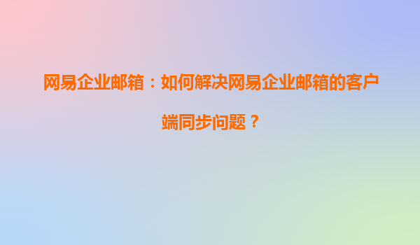 2025-04-19如何解决网易企业邮箱的客户端同步问题? 随着信息技术的不断发展,企业对电子邮件的依赖程度越来越高,企业邮箱已经成为日常沟通和管理的一部分。网易企业邮箱作为目前市场上非常受欢迎的一款企业邮箱解决方案...