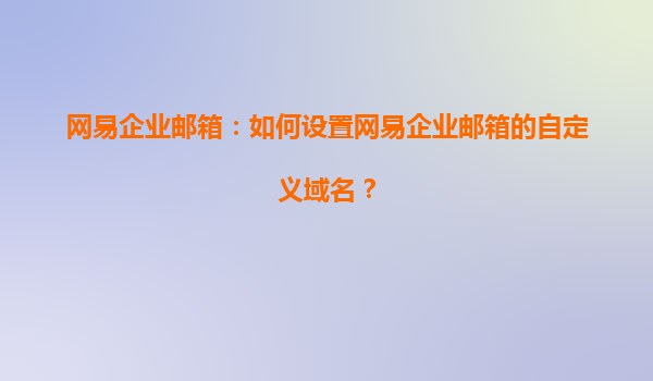 2025-04-19网易企业邮箱:如何设置网易企业邮箱的自定义域名? 随着互联网的发展,企业之间的沟通方式越来越依赖于电子邮件。一个专业的企业邮箱不仅可以提升公司形象,还能够增强内部沟通的效率。网易企业邮箱作为市场上备受...
