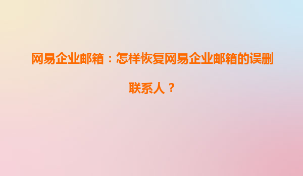 2025-04-18如何恢复网易企业邮箱的误删联系人? 随着企业的日常运营,电子邮件已经成为了沟通和协作的重要工具。网易企业邮箱作为一款功能强大的邮箱服务,受到很多公司和团队的青睐。除了提供可靠的邮件服务外,网易...