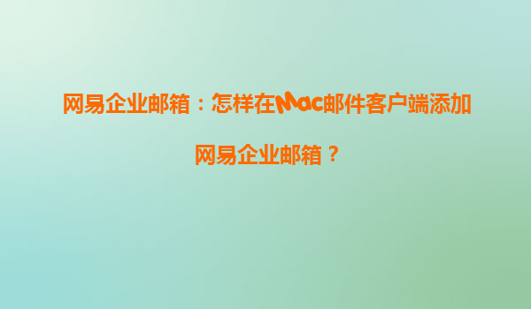 怎样在Mac邮件客户端添加网易企业邮箱 随着企业通信的日益数字化,邮件已经成为了企业沟通的重要工具。网易企业邮箱作为一款专业的企业级邮件服务,凭借其高效、稳定的优势,在各大企业中广泛应用。尤其是在Mac设...