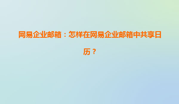2025-04-17网易企业邮箱:怎样在网易企业邮箱中共享日历? 在现代的商业环境中,企业之间的沟通效率直接影响到工作的质量与进度。作为一款集成了丰富功能的企业邮箱,网易企业邮箱不仅提供了强大的邮件管理功能,还具备了...