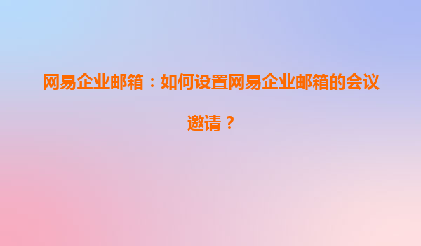 2025-04-17网易企业邮箱:如何设置网易企业邮箱的会议邀请? 随着企业信息化管理的逐步发展,越来越多的公司开始使用企业邮箱进行日常的沟通和协作。网易企业邮箱作为国内领先的企业邮箱服务之一,凭借其高效、稳定、安全的特...