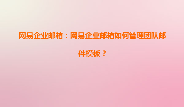 2025-04-17如何使用网易企业邮箱管理团队邮件模板 在现代企业运营中,电子邮件已成为沟通和管理的重要工具。尤其是对于团队协作,统一、高效的邮件管理不仅能够提升工作效率,还能增强团队之间的沟通协作。网易企业邮箱作...