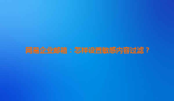 2025-04-16网易企业邮箱:怎样设置敏感内容过滤? 在现代企业的办公环境中,电子邮件已经成为一种重要的沟通工具。作为一款知名的企业邮箱服务提供商,网易企业邮箱以其强大的功能和稳定的服务赢得了广泛的用户好评。而其...