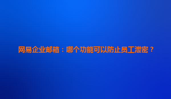 网易企业邮箱:保障信息安全,防止员工泄密的智能利器 引言:企业信息安全的重要性 在数字化时代,信息成为企业竞争的关键资源。如何保护这些...