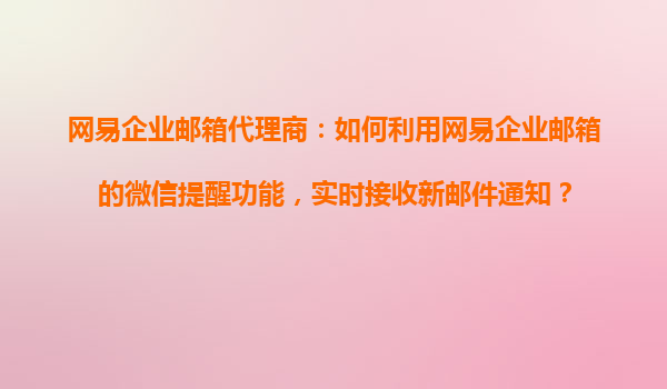 2025-11-01网易企业邮箱代理商:如何利用网易企业邮箱的微信提醒功能,实时接收新邮件通知? 网易企业邮箱的强大功能与优势 作为国内领先的企业邮箱服务提供商,网易企业邮箱在性能、安全性和用户体验方面均表现出色。它不仅...