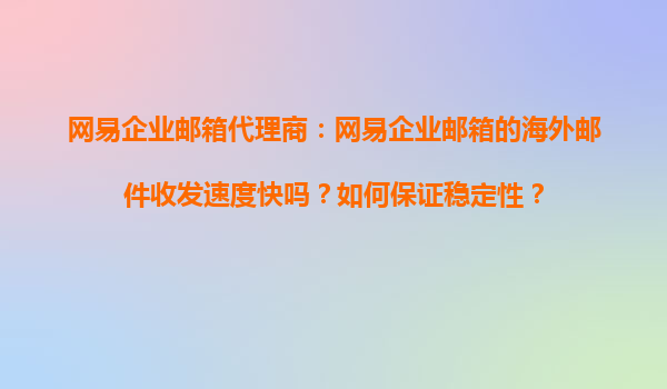 2025-11-01网易企业邮箱代理商:网易企业邮箱的海外邮件收发速度快吗?如何保证稳定性? 在全球化商业环境中,企业邮件作为日常沟通的重要工具,其收发速度和稳定性直接影响企业运营效率。尤其是对于频繁与海外客户或合作...