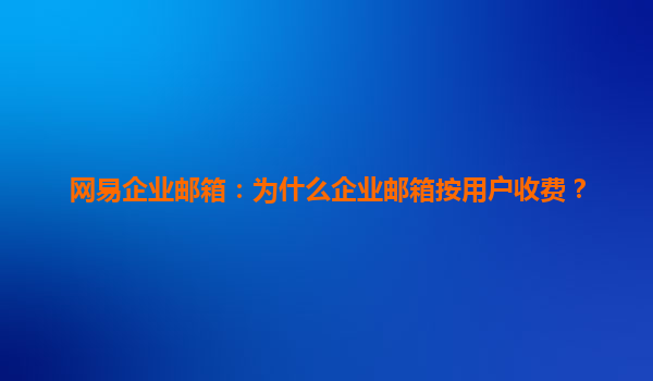 2025-04-15为什么企业邮箱按用户收费? 随着互联网的快速发展,企业的沟通方式也在不断地更新和升级,尤其是企业邮箱的普及。网易企业邮箱作为国内知名的企业邮箱提供商之一,凭借其稳定的服务质量和强大的功能,广泛受到企...
