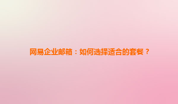2025-04-15网易企业邮箱:如何选择适合的套餐? 在现代企业中,电子邮件已经成为一种重要的沟通工具,尤其是对于企业而言,拥有一个稳定、安全、功能丰富的企业邮箱系统尤为重要。网易企业邮箱作为国内知名的企业邮箱服...