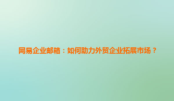 2025-04-15网易企业邮箱:如何助力外贸企业拓展市场 随着全球化的发展,外贸企业面临着越来越激烈的市场竞争。为了在这种竞争中脱颖而出,外贸企业不仅要在产品和服务上做好准备,还需要借助现代化的工具来提高工作效率和...
