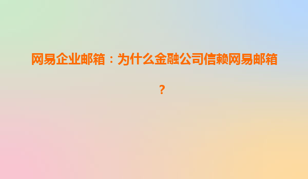 2025-04-15为什么金融公司信赖网易企业邮箱?一、网易企业邮箱概述网易企业邮箱作为国内领先的企业邮箱服务提供商之一,凭借其卓越的稳定性、安全性和丰富的功能,已经成为众多金融公司和企业的首选。随着互联网的发展,企业在...