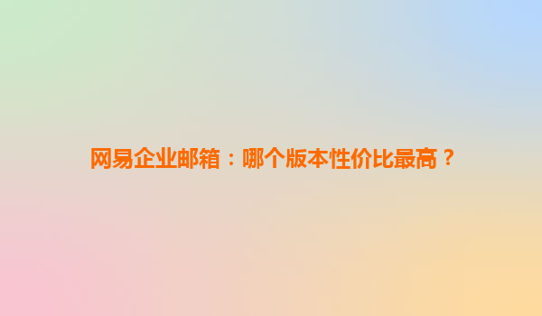 选择网易企业邮箱:哪个版本性价比最高? 随着企业对信息化管理的需求不断增加,企业邮箱已成为公司办公必不可少的工具之一。众多邮箱服务提供商中,网易企业邮箱凭借其稳定的性能、丰富的功能以及合理的价格,...