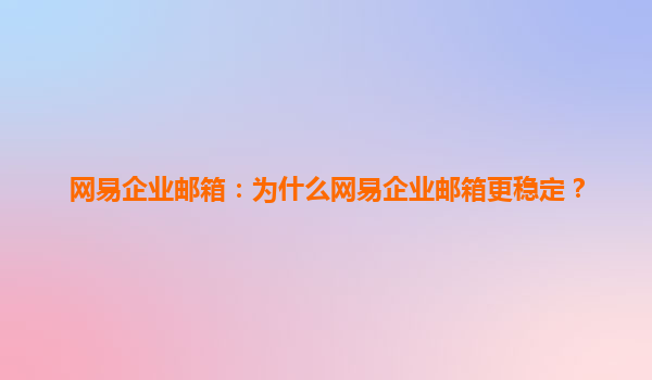 2025-04-14网易企业邮箱:为什么网易企业邮箱更稳定? 在现代商业运营中,企业邮箱已经成为了企业沟通、协作和数据传输的重要工具。作为国内知名的互联网公司,网易推出的网易企业邮箱在稳定性方面具有独特优势。本文将详细分...
