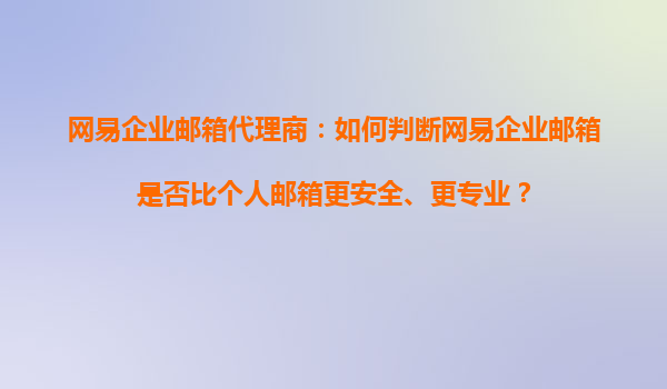 2025-11-01网易企业邮箱代理商:如何判断网易企业邮箱是否比个人邮箱更安全、更专业? 一、安全性与专业性的核心差异 在数字化办公时代,企业邮箱的安全性和专业性直接影响企业运营效率和数据安全。网易企业邮箱作为...