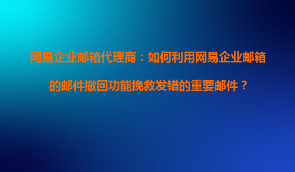 2025-11-01网易企业邮箱代理商:如何利用网易企业邮箱的邮件撤回功能挽救发错的重要邮件? 一、邮件误发的常见场景与风险 在职场沟通中,邮件误发是高频失误之一。例如:将含有机密信息的邮件误发给竞争...