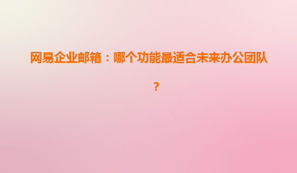 2025-04-11网易企业邮箱:哪个功能最适合未来办公团队? 在快速发展的商业环境中,企业对于高效、安全的通信工具的需求日益增长。网易企业邮箱作为市场上的佼佼者,以其稳定的性能、优质的服务和丰富的功能,...