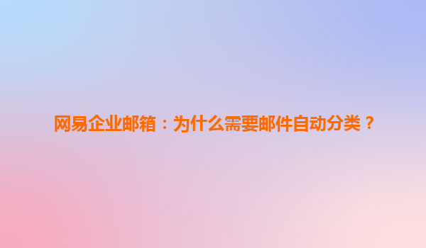 2025-04-11网易企业邮箱:为什么需要邮件自动分类? 在快节奏的商业环境中,有效的信息管理是企业成功的关键之一。邮件作为企业沟通的主要方式,其管理效率直接影响到工作流程的顺畅与否。网易企业邮箱通过其邮件自动分类...