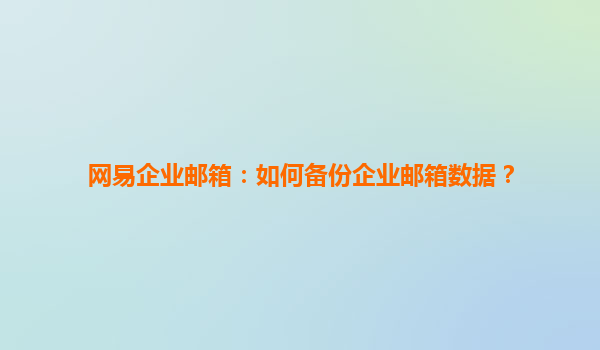 如何备份网易企业邮箱数据 在当今商业环境中,电子邮件是企业沟通的重要工具。网易企业邮箱作为一种专业的电子邮件解决方案,不仅提供稳定可靠的邮件服务,还提供了数据备份等功能,确保企业数据的安全。本文将...