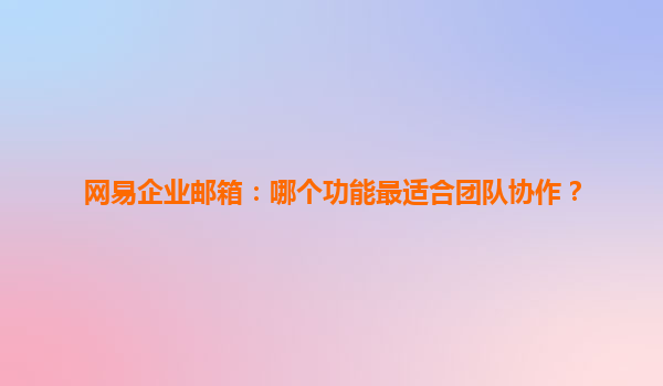 2025-04-12网易企业邮箱:哪个功能最适合团队协作? 在当今快速发展的商业环境中,有效的团队协作是企业成功的关键。网易企业邮箱作为一款专业的商务通信工具,不仅提供了稳定可靠的邮件服务,还推出了多种功...