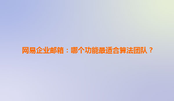 2025-04-11网易企业邮箱:哪个功能最适合算法团队? 在当今数据驱动的商业环境中,算法团队扮演着至关重要的角色。他们负责分析大量数据,提取有价值的信息,以支持决策和创新。因此,选择一个功能强大的企业邮箱系统对于...
