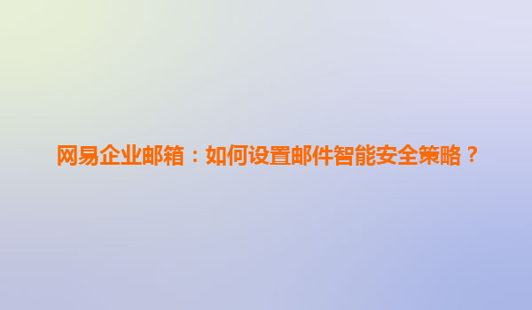 2025-04-11如何设置网易企业邮箱的邮件智能安全策略 在当今信息化快速发展的时代,电子邮件已成为企业通信的重要工具。网易企业邮箱作为市场上的主要服务提供者之一,提供了多种智能安全策略,以保护企业免受各种网络威胁...