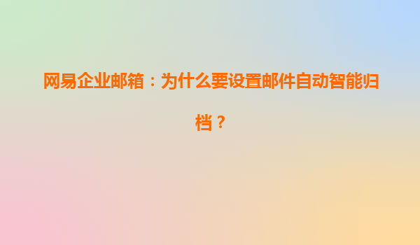 2025-04-11为什么要设置邮件自动智能归档? 在快节奏的商业环境中,有效的信息管理是企业成功的关键之一。邮件作为企业日常沟通的重要工具,其管理效率直接影响到工作流程的顺畅与否。网易企业邮箱提供的自动智能归档功能...