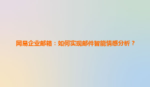 2025-04-11网易企业邮箱:如何实现邮件智能情感分析? 引言 在当今快速发展的信息时代,电子邮件已成为企业沟通的重要工具。网易企业邮箱作为国内领先的电子邮件服务提供商,不仅提供稳定可靠的邮件传输服务,还不断探...