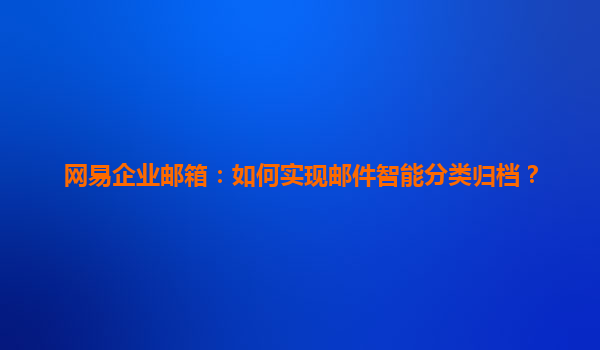 2025-04-10TheUSERhasrequestedadetailedarticleinChineseabouthowtoimplementintelligentemailclassificationandarchivingusingNetEaseEnterpriseEmail.Thearticleshouldhighlighttheadvantageso...