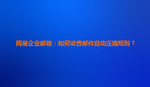 2025-04-09网易企业邮箱:如何设置邮件自动压缩规则 引言 在现代企业中,电子邮件已成为沟通的重要工具。网易企业邮箱凭借其稳定性和丰富的功能,成为众多企业的首选。为了提高工作效率,合理管理邮箱空间显得尤...