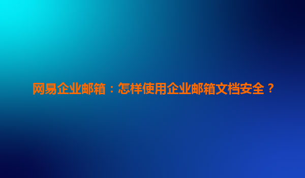 网易企业邮箱:如何使用企业邮箱文档安全 在信息化时代,企业邮箱已经成为企业内部沟通、对外交流的重要工具。网易企业邮箱以其强大的功能和安全性,成为众多企业的不二选择。本文将探讨如何利用网易企业邮箱及其...