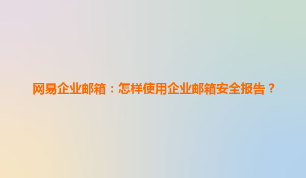 2025-04-09网易企业邮箱:如何使用企业邮箱安全报告 简介 在当今信息化时代,企业邮箱作为企业内部和外部沟通的重要工具,其安全性显得尤为重要。网易企业邮箱作为国内领先的企业邮箱服务提供商,提供了全面的安全报...