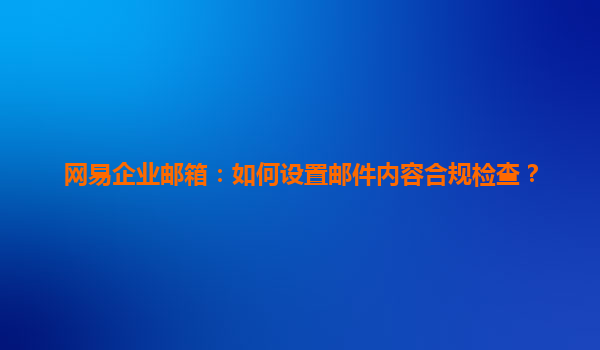 网易企业邮箱:如何设置邮件内容合规检查 引言 在现代企业中,电子邮件是日常沟通的重要工具。为了确保信息安全和合规性,企业需要对邮件内容进行合规检查。网易企业邮箱作为国内领先的企业邮箱服...