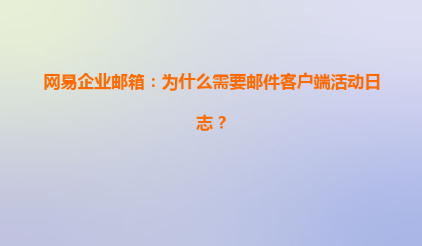 2025-04-08引言 在现代企业中,电子邮件已成为沟通和协作的重要工具。网易企业邮箱作为一款专业的企业级邮件服务,凭借其强大的功能和优质的服务,赢得了众多企业的青睐。在使用电子邮件的过程中,邮件客户端活动日志...