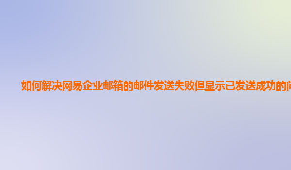 2024-12-05如何解决网易企业邮箱的邮件发送失败但显示已发送成功的问题 网易企业邮箱作为一款功能强大的企业邮件系统,广泛应用于各类企业中,提供了可靠的邮件服务和丰富的功能。然而,在日常使用过程中,部分用户...
