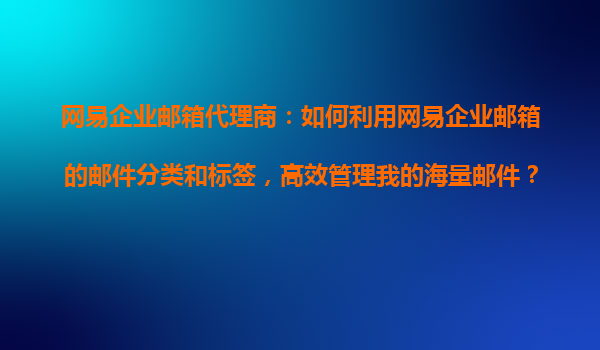 2025-10-30网易企业邮箱代理商:巧用邮件分类与标签,轻松驾驭海量邮件 一、为什么需要高效邮件管理? 在商业沟通中,邮件扮演着至关重要的角色,尤其对于企业用户而言,每天可能需要处理数十甚至上百封邮件。如果缺乏有效的...