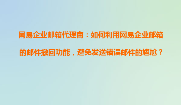 2025-10-29网易企业邮箱代理商:如何利用网易企业邮箱的邮件撤回功能,避免发送错误邮件的尴尬? 一、网易企业邮箱的核心优势 作为国内领先的企业级通信服务提供商,网易企业邮箱...