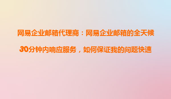 网易企业邮箱代理商:网易企业邮箱的全天候30分钟内响应服务,如何保证我的问题快速解决? 一、网易企业邮箱的核心优势 作为国内领先的企业邮箱服务提供商,网易企业邮箱凭借多年的技术积累和运营经验,构建了...