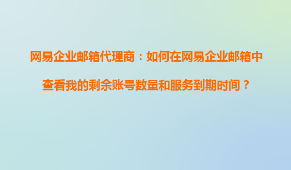 2025-10-29网易企业邮箱:查看剩余账号数量与服务到期时间的操作指南 为什么要选择网易企业邮箱? 网易企业邮箱作为国内领先的企业级邮箱服务,以其稳定可靠的系统架构、强大的安全防护能力和便捷的管理功能,成为众多企业信...