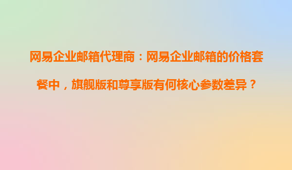 2025-10-30网易企业邮箱代理商解析:旗舰版与尊享版的核心参数差异 作为国内领先的企业邮箱服务提供商,网易企业邮箱凭借其稳定性、安全性和高效的管理功能深受企业用户青睐。在众多套餐中,旗舰版和尊享版是企业用户...