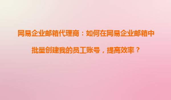 2025-10-29网易企业邮箱代理商:如何在网易企业邮箱中批量创建员工账号,提高效率?一、网易企业邮箱的优势在数字化办公时代,企业邮箱不仅是沟通工具,更是企业管理效率的体现。作为国内领先的企业邮箱服务商...